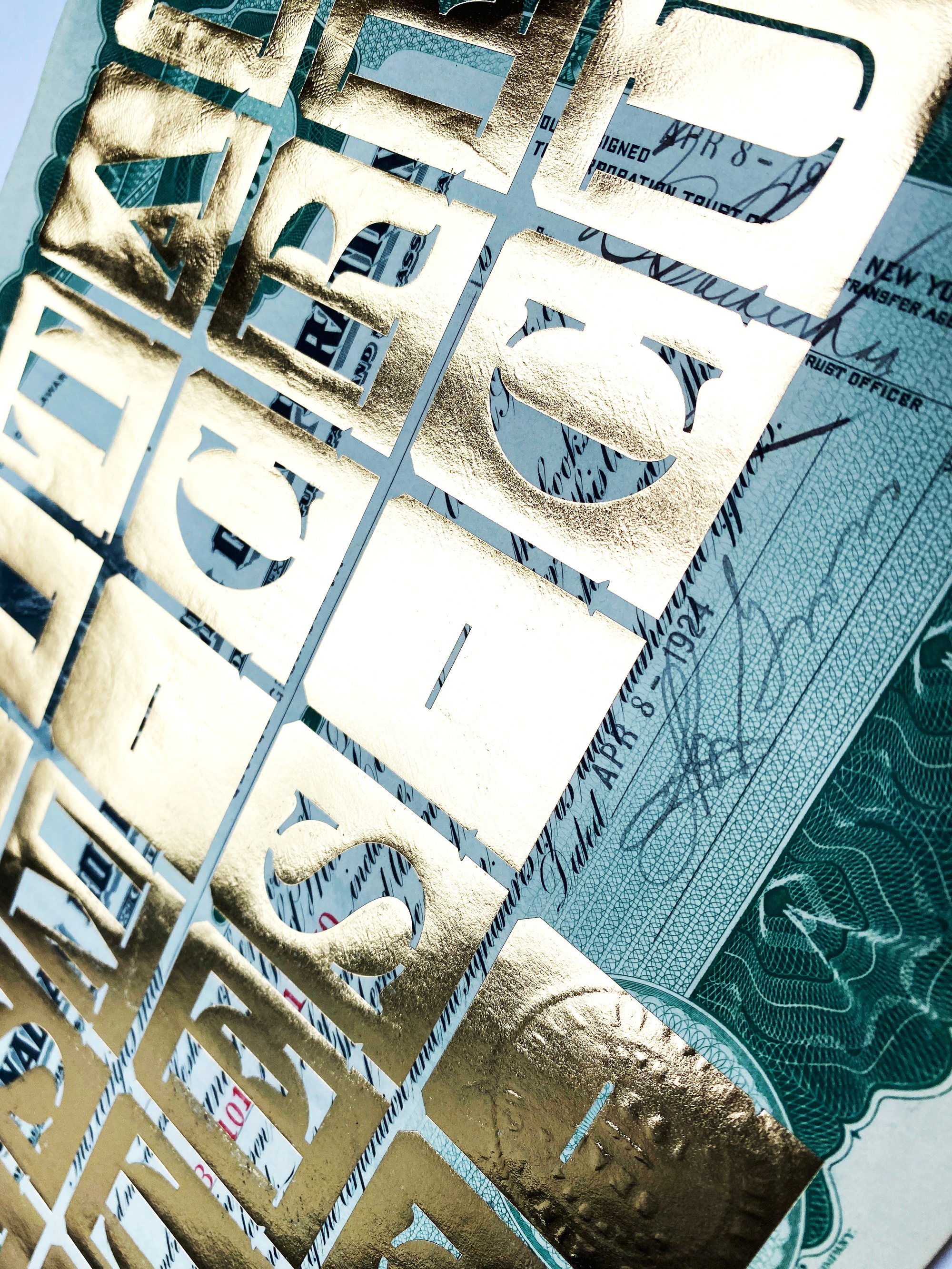 Foil block on a vintage share certificate of a Canadian gold mine [April 8 – 1924]