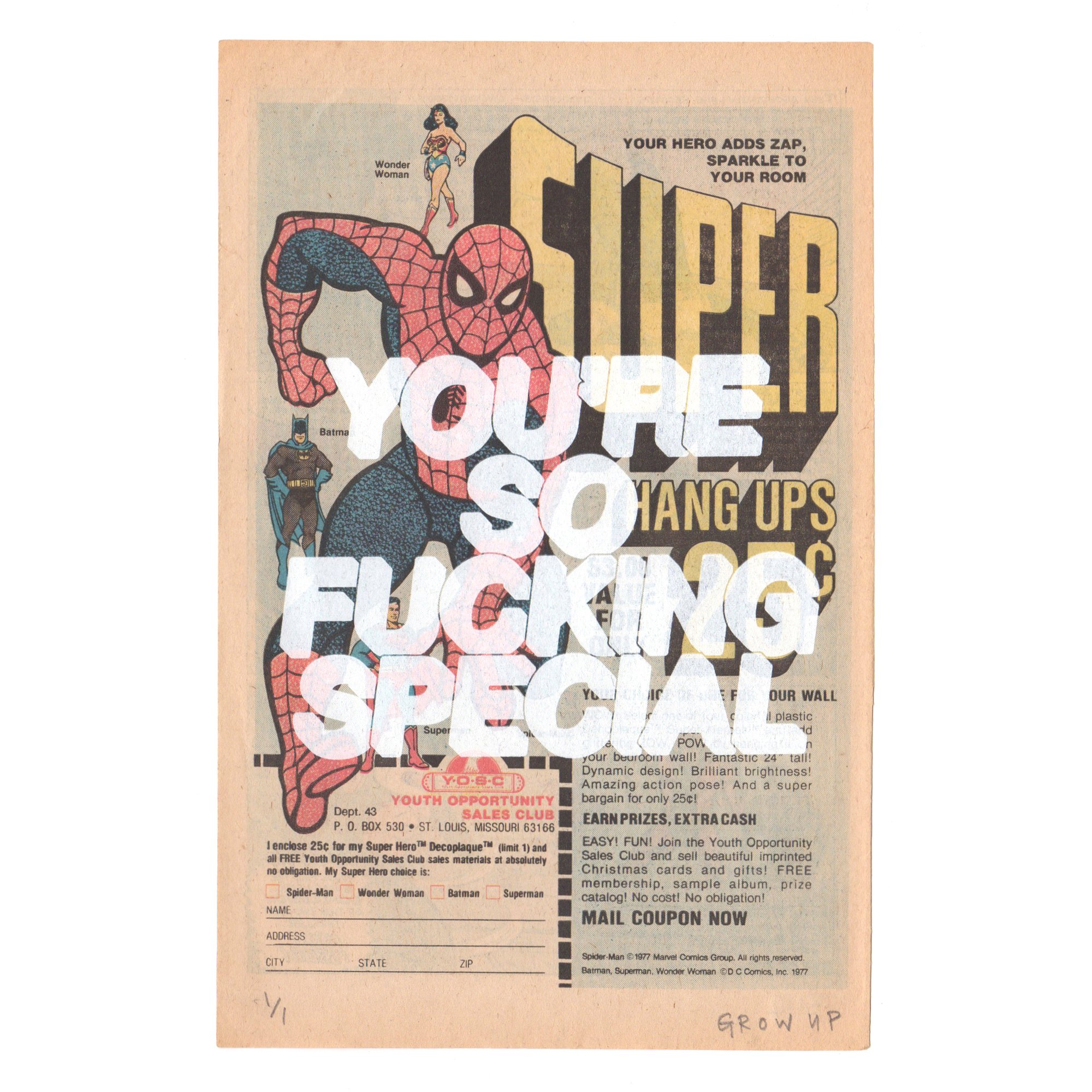 1 colour screen print on vintage comic book page